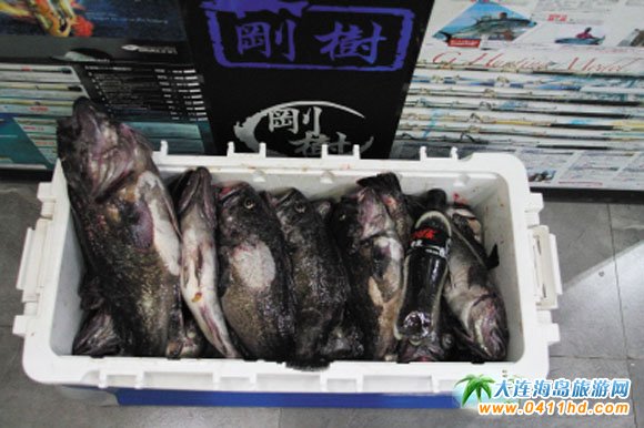 經過一個多小時的海上奔波,船到預定釣點。此時,大家早已把各種裝備準備完畢。經驗豐富的船長一聲令下,只見鉛墜嗖嗖地向海底探去,鉛墜到底55米。船長是有多年航海經驗的老船長,根據他的經驗,釣水下52~53米處,大家也都按照船長的指示把釣組提高兩米。過了不一會兒,兩側的釣友紛紛中魚了,只見船舷的三四把釣竿的竿梢劇烈地顫抖,頓時電輪齊鳴,伴隨電輪拉線的卷線聲,以及竿梢劇烈的“點頭”,那感覺真讓人興奮。漁獲出水后,目測有2斤左右的黃魚和大黑魚一條條活蹦亂跳的被拉出水面。不一會兒,大家的釣箱已裝了接近半箱。一通忙活后,魚的咬口變少,船長主動提出更換另一處半個小時航程的釣點。