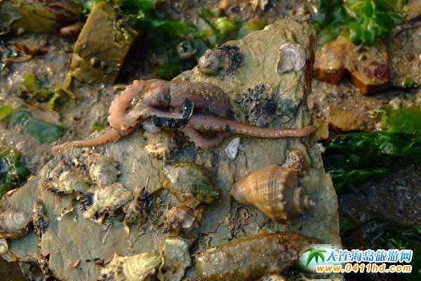 小海鮮一退潮隨處可以見到,翻開一塊大石頭,下面除了有四散逃竄的小螃蟹,還有不少退潮時被擱淺在石頭縫的小魚。小螃蟹、海蠣子、波螺等有出產,適合休閑趕海。