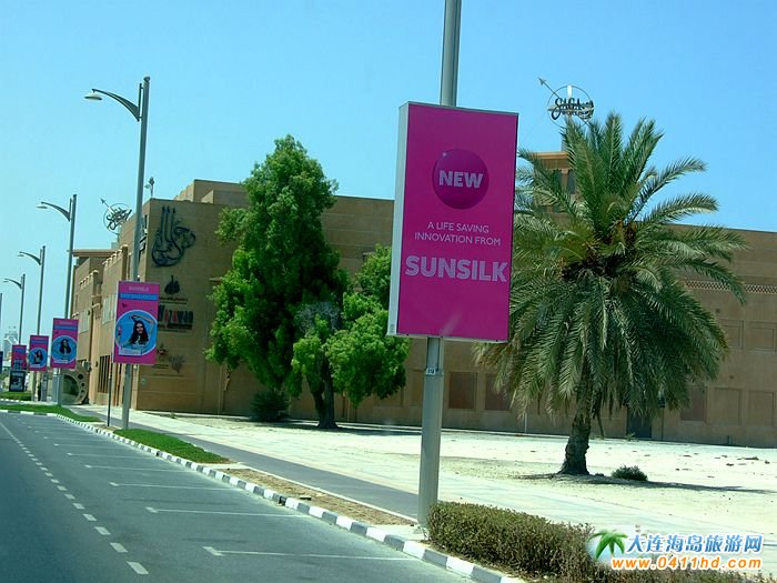 但正因為如此,迪拜的街景似乎有了一些孤冷高傲的樣子,無論是建筑樓房,還是道路兩側的椰棗樹等,都沙盤中的布景,精巧精致,在藍天烈日之下,顯示出它特有的華貴。