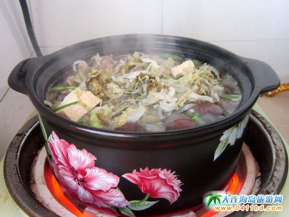 東北人最愛來上幾口正宗的殺豬菜,超大的鐵鍋自家養的豬肉,自家制的酸菜,自家灌的血腸,咕嘟咕嘟,即使夏天也要來上那么一份。