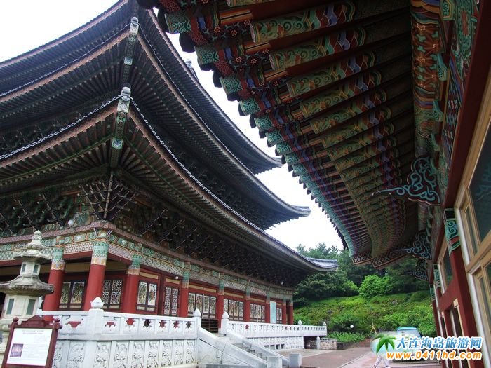 韓國濟州島藥泉寺以朝鮮初期典型佛教建筑樣式所建,地上高達30m(相當于一般建筑10層樓左右)、建筑總面積3,305㎡,為單一寺剎中相當大型的建筑物。相關鏈接:大連到韓國旅游,大連旅游,韓國旅游景點