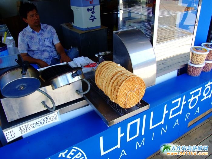 到韓國南怡島,不僅要欣賞風景的同時也不能忘了享受美味,南怡島也有不錯的食物。在景區(qū)入口處,一字排開了一些大排檔,其中不凡我們所熟悉的烤肉串,肉腸,更有我們常見的烤玉米,不過,這里的烤玉米的家什的確非常吸引眼球,看著頗有些九大行星運行的意思。