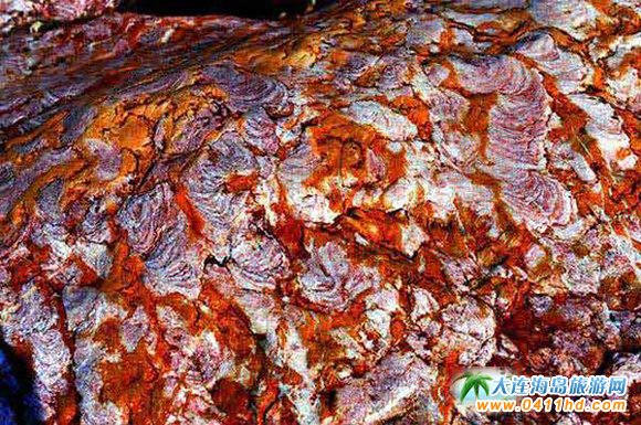 距今七億年的藻類植物化石組成了這個粉紅色的海中花園,內(nèi)旋的紋理,如同一簇簇盛開的玫瑰,千萬年綻放如一,見證海與石亙古不變的愛戀。