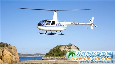 大連金石灘旅游集團有限公司與海南航空首航直升機通用航空有限責任公司合作的東北首個直升機觀光游項目,昨日在金石灘旅游度假區載客升空。