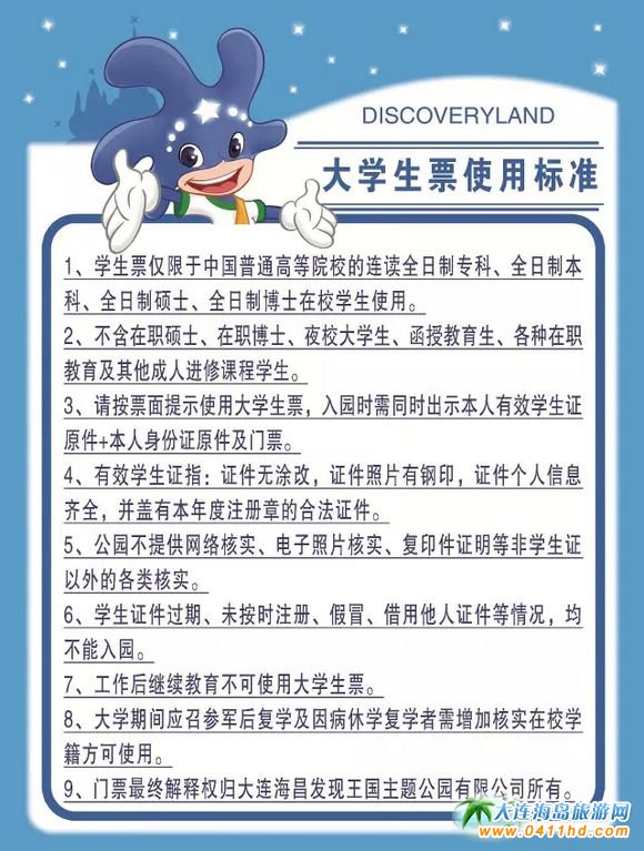 大連發(fā)現(xiàn)王國學(xué)生票的使用標(biāo)準(zhǔn),快來看一下吧。
