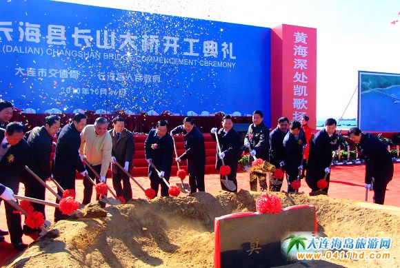 長山大橋是大連市政府2010年重點工程,是目前國內最大跨徑預應力混凝土矮塔斜拉橋。作為長山群島旅游避暑度假區建設的重大功能性基礎設施項目,該項目橫跨長山東水道,連接大、小長山島,全長3.38公里,采用雙向四車道一級公路標準,設計時速60公里/小時。建設特大橋1座1.79公里,凈寬19米;引線長1.59公里,路基寬21米。其中主橋為540米雙塔雙索面矮塔斜拉橋,橋梁凈高27.43米,主橋孔可以滿足1000噸級船舶雙向通航,副橋孔可以滿足1000噸級船舶單向通航。工程估算總投資5.79億元,計劃2010年10月開工,2013年10月底建成通車。
