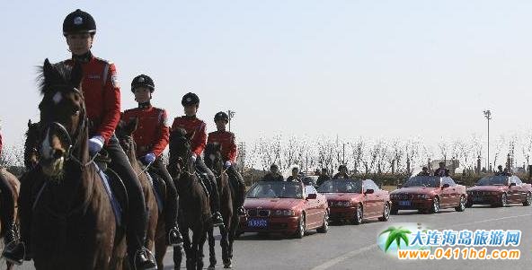 3月24日,在大連市星海廣場(chǎng),女騎警助陣農(nóng)民工集體婚禮。當(dāng)日,5對(duì)農(nóng)民工新人在大連星海廣場(chǎng)舉辦了一場(chǎng)名為“海誓山盟春天里”的慈善集體婚禮。此次婚禮是2011大連婚慶旅游節(jié)暨婚慶博覽會(huì)的活動(dòng)之一,參加集體婚禮的5對(duì)農(nóng)民工新人是大連市婦聯(lián)和市慈善總會(huì)在大連普通農(nóng)民工群體中尋找到的。