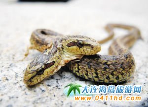 昨日下午,在大連森林動物園見到了這條神奇的小蛇,長約20厘米、粗約1厘米,兩個頭活動自如,都吐著長長的信子。“以前只是在資料中見到過雙頭蛇,現實中從沒見過。”專業的飼養人員介紹,這條蛇是我市土生土長的,是一條雙斑錦蛇,初步看它應該在野外生存2~3個月了,目前還處于蛻皮成長期。“別看它小,現在就能吃下剛出生的小老鼠了。”