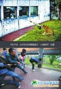 近日,長沙生態動物園進行了“人虎拔河”的比賽。一只東北虎咬住麻袋中的食物,麻袋被一根繩子拴著,游客...
