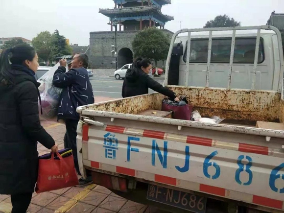 雖然活動期間遇上陰天,但也絲毫阻擋不了大家的愛心。團員青年把裝滿衣物的箱子從車上搬到了指定的位置,細心的將衣服清點分類。等全部整理好后再統一發放。