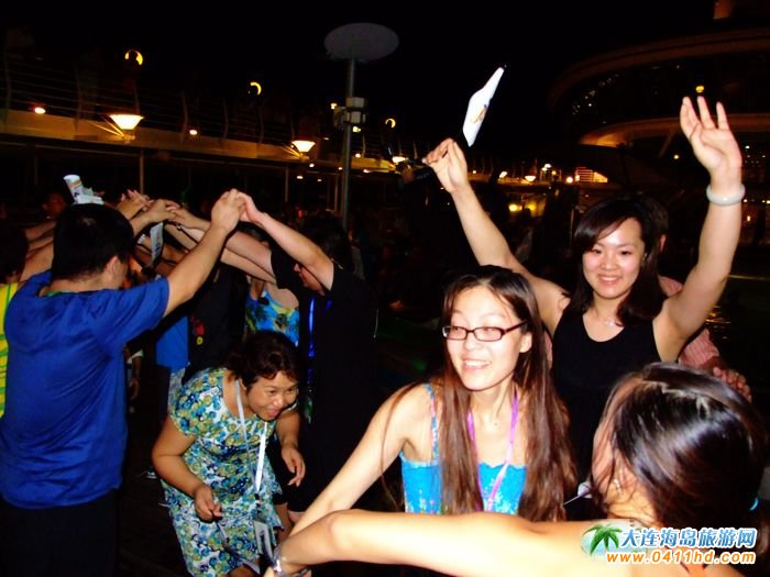 "郵輪上會讓你時時的激情四射。甲板派對是由"海洋神話號"郵輪娛樂活動部經理JEFFREY先生及娛樂部員工主持,音樂來自DYNAMICDUO,活動的時間是在晚上10:45至午夜,地點在9層露天泳池畔,記住,不要太興奮,不要太狂熱,這里沒有出租車。
